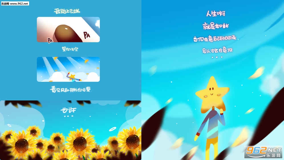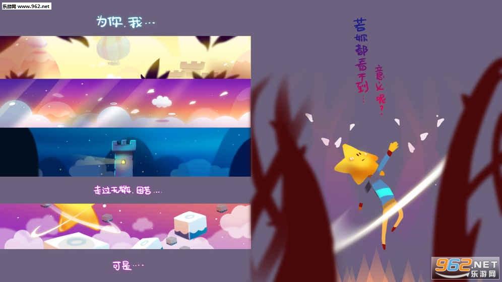 《星星的天空之梦》是一款平台跳跃和解谜相结合的休闲游戏,这一次我们不仅要控制群星王子,还需要利用好王子有限影子,解开重重机关谜题,守护心上人桃乐丝——一株田野里的向日葵的微笑。