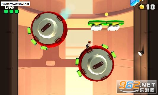 游戏中并没有任何的虚拟按键,玩家们只要随意点击屏幕任意位置都可以控制主角跳跃,至于左右方向那就没有办法控制了,只能让他撞到墙才会回头。除了要多多注意障碍之外,还会有很多机关的出现,例如上下移动的踏板、旋转的跳台等等。