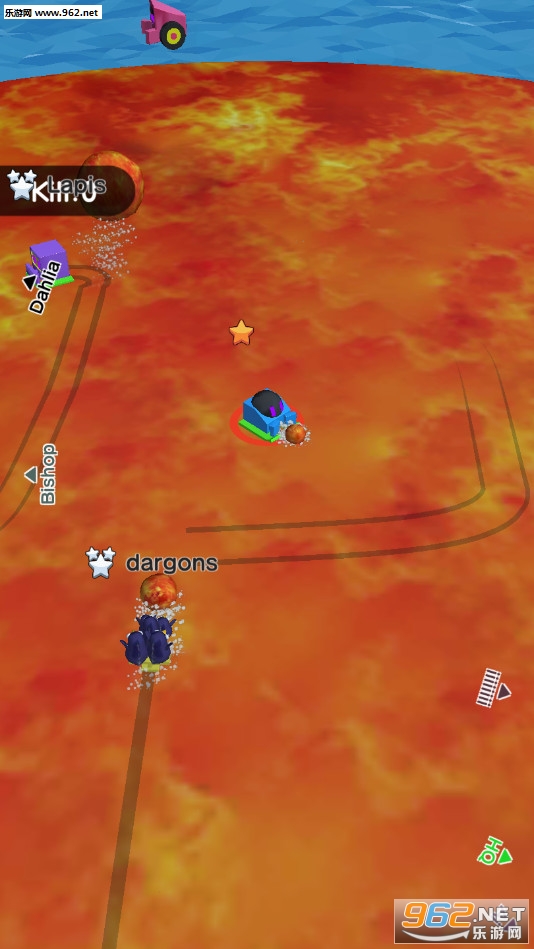 《熔岩球大作战官方版》(Lava Ball Wars)是一款画面清新的多人在线碰撞类休闲手游,游戏中将控制一辆小汽车冒险,类似屎壳郎,只不过本款游戏中小汽车推的是熔岩球,按住屏幕移动小汽车可以让熔岩球越滚越大,松开屏幕可以将熔岩球发射出去,将对方击出平台。