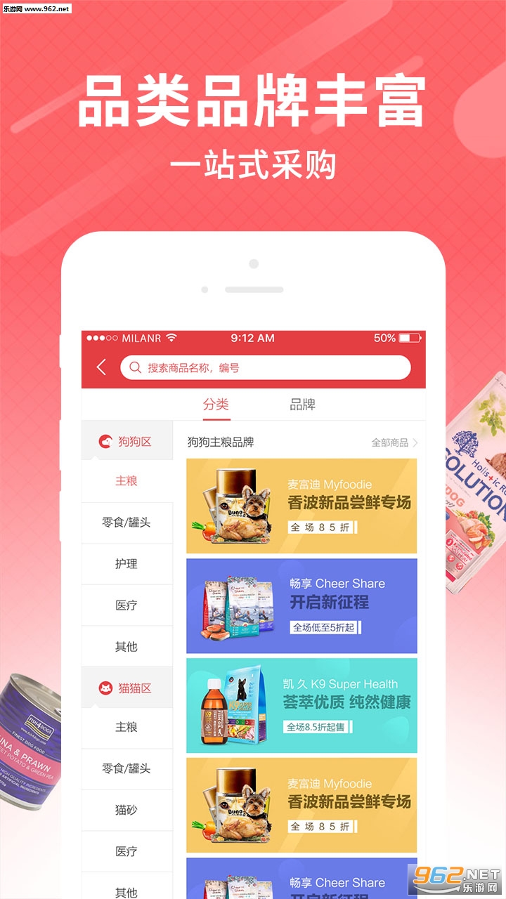 宠好货覆盖几乎所有品类的宠物用品,每个品类有多个知名品牌供您选择。实现了宠物店的一站式轻松采购。