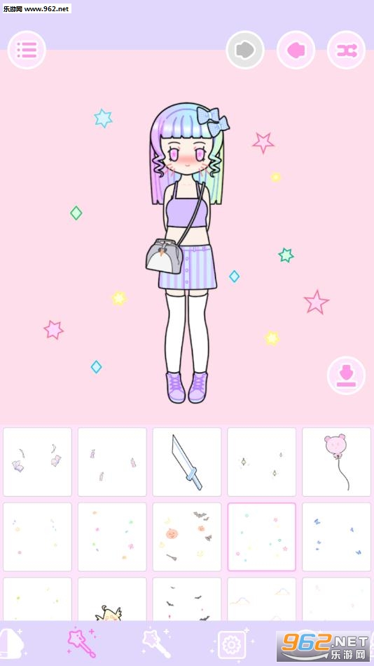 游戏画面精美,服装道具丰富,玩家可以自由的进行组合搭配,还能更换相关的背景场景,和你的朋友分享你的作品,将图片设置为壁纸等等,非常有趣,赶紧下载吧!