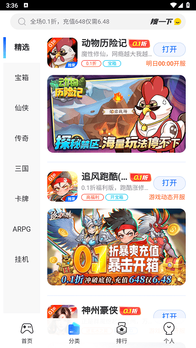 折扣手游福利:免费首充,自动打折,1秒到账,低至3折;