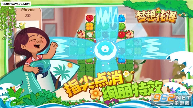 与传统的三消类游戏不同,《梦想花语》只需2个以上的相同元素即可进行消除,各种不同的通关条件及功能道具,给予玩家更多的挑战和乐趣