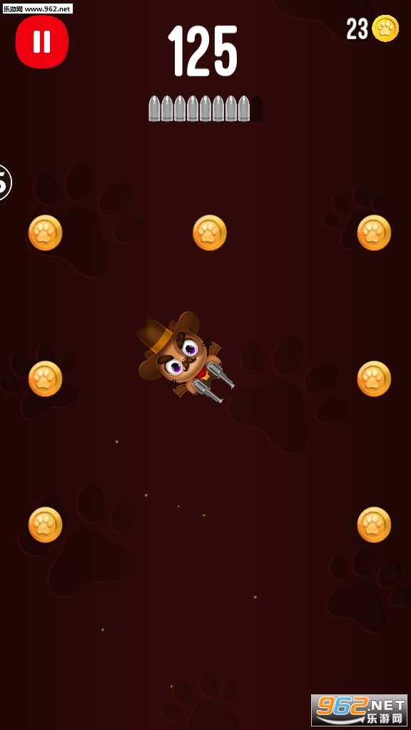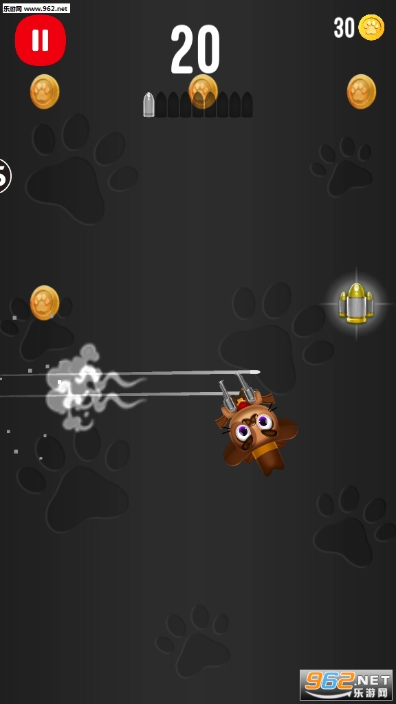 《飞天小酷猫手游》是一款特别的射击游戏,点击游戏屏幕,让手枪射击,利用射击的反作用力让小猫可以向上飞翔,调整好射击的角度,让小猫吃到更多的金币,金币可以用来补充燃料。