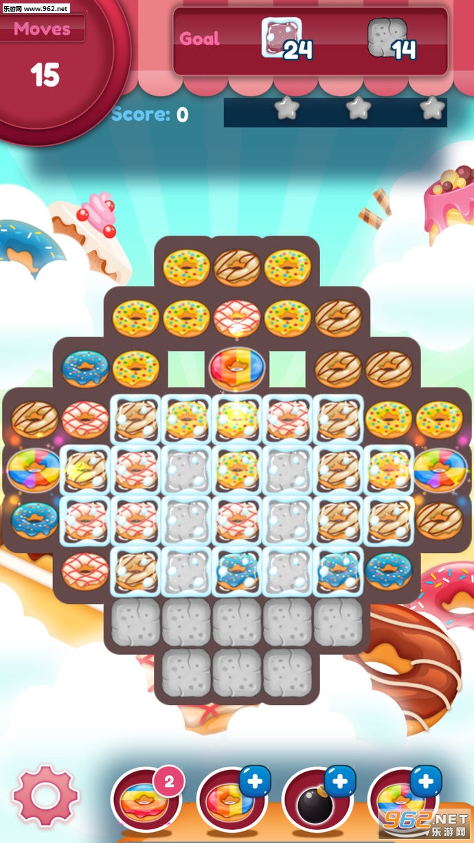 游戏的玩法属于纯粹的消除玩法,在不同的关卡中会出现各种不同形状的甜甜圈,玩家需要将他们进行匹配然后消除,可爱的游戏画面,轻松休闲的游戏氛围还有丰富的关卡挑战可以帮助你度过一个完美的休闲时光,喜欢的亲们赶紧下载吧。