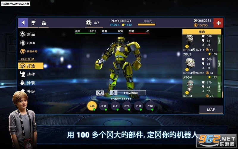 以 17 个专属机器人的 100 多个巨型机器人部件揭开你的独特身份。从标志性的头部、庞大的躯干以及强壮的手臂和双腿中进行选择。以能够生动再现你风格并让人眼前一亮的色彩(Paint, Intro)定制你的物品,并将独特的名字宣称为“真实拳击冠军造王者”!