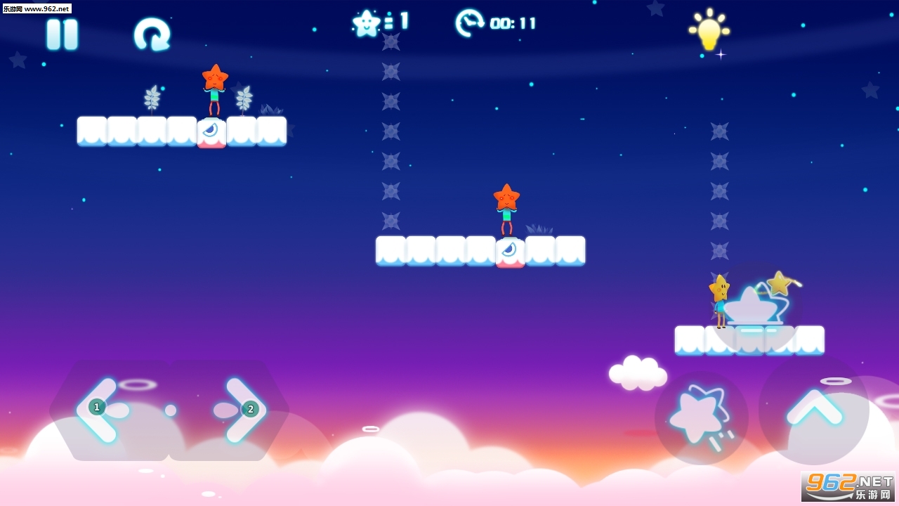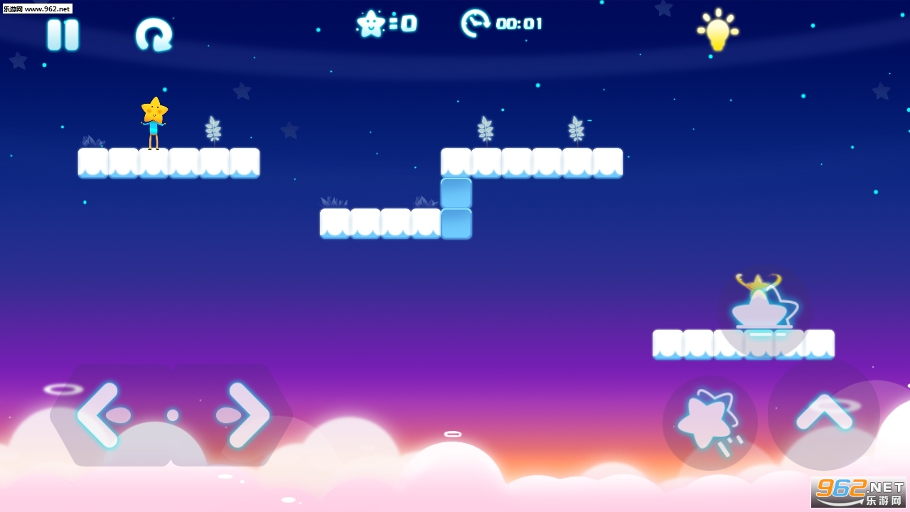 非常不错的一款休闲闯关游戏,操作简单易上手,游戏的画风充满了童趣的味道,犹如置身美妙的梦境,玩家需要操作你的星星在各种云层的平台之上进行跳跃,丰富的关卡等待着你的挑战。