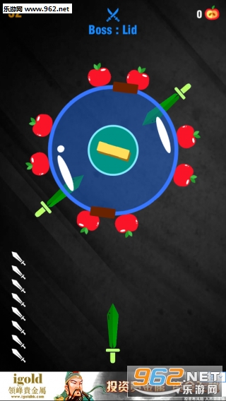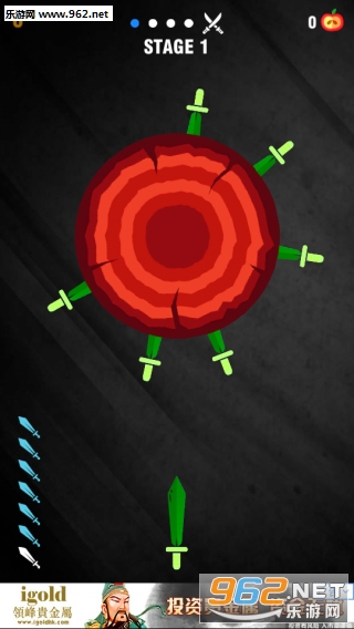 《刀锋挑战赛官方版》是一款有趣的飞刀投掷游戏,游戏中的靶子都是转动的,而且运动的速度也不是匀速的,你要看准时机的投掷你的飞刀,也不能撞上其他的飞刀,脱靶的话游戏就结束,在有限的飞刀数量内将靶子击碎就可以过关了。