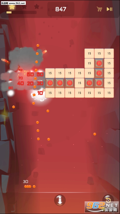 非常喜欢这种暴爽无比的打砖块游戏,会有一种自己很厉害的错觉,选择合适的角度射击,努力用最少的步数获得胜利,尽情的闯关吧!