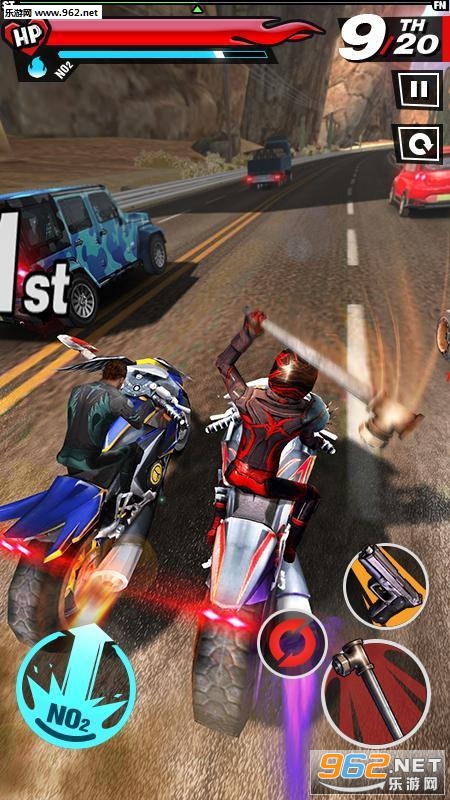 《狂暴摩托安卓版》是一款3D卡通风格以暴力摩托为题材的赛车竞速类游戏。在游戏中,玩家将扮演一名摩托车暴走族。游戏是通过遥感来控制摩托的平衡。屏幕下方一左一右都有一个攻击键,分别会用来攻击两边的敌人。