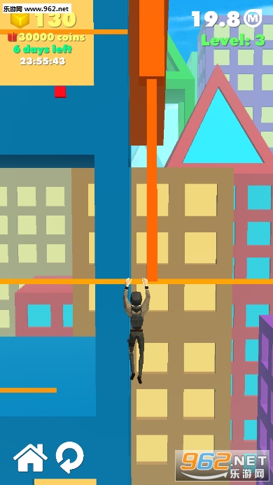 玩起来还挺有意思的,玩家在游戏中需要想办法往上爬,你会遇到包括梯子以及秋千等在内的多种元素,展现出你矫健的身姿快点爬上楼顶就是你的目的哦!