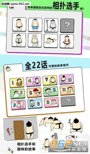 捡到个相扑选手是一款非常奇葩搞笑的模拟养成游戏,从游戏魔性的画风看来,就给人一种非常奇葩的感觉,游戏的剧情也是很有趣,讲的是玩家捡到迷你的相扑选手,培养成为冠军的故事,简约而带有Q版的人物设计加上轻松趣味的BGM。