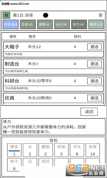 3、开局两个面包,所有食物自己收集食材,自己做;