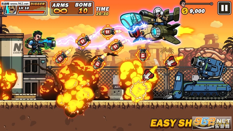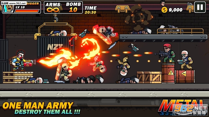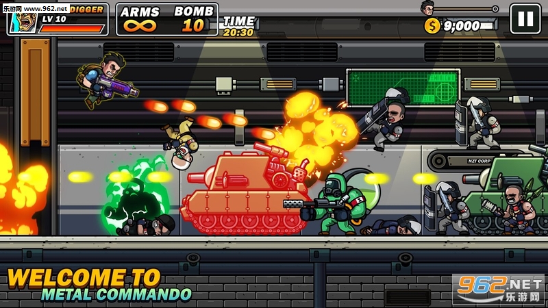 《金属雇佣兵》是游戏商1Sky Studio开发的一款卡通风格的2D横版射击类游戏。