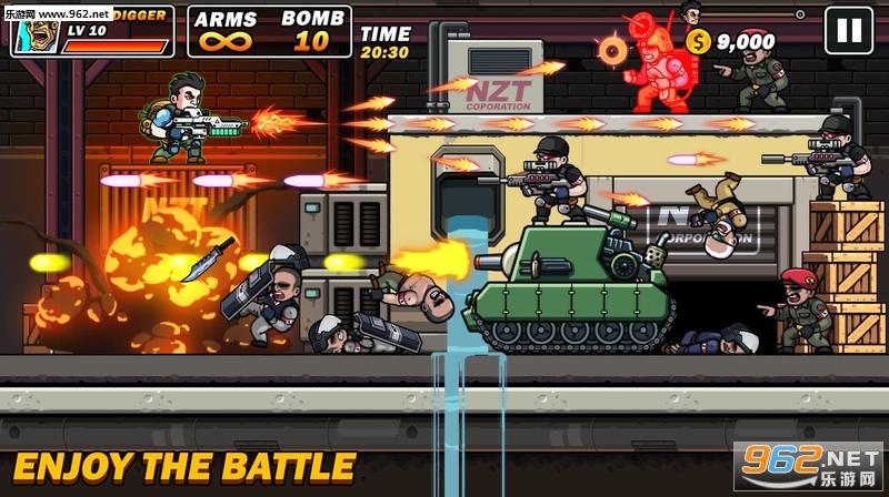 游戏中提供了多个不同的游戏角色,每一个角色都有自己的特殊战斗技能;购买强大的枪支和手榴弹,同时用你的金币去升级你所有的武器并且投入到战场当中; 收集黄金来升级你的角色以及你的军械库,拥有更加强大的游戏火力。