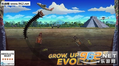 这游戏有3个不同的场景和45个等级,不断的在地下游走偷袭人类,时不时地跳出地面吃掉地面上的人类和动物,你将面对的不仅仅是手无缚鸡之力的食物,还有来自于人类甚至是外星人的反抗。