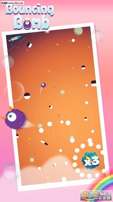 《弹跳炸弹安卓版》是一款休闲向的娱乐收集游戏,其玩法与之前的一款作品十分相似,不过忘记叫什么了...玩家需要控制球体不断的向中间的圆圈旋转并收集一路上的小物品,让自己的积分不断增长。