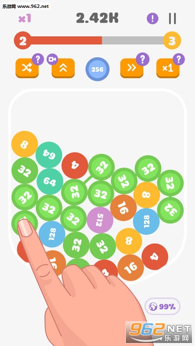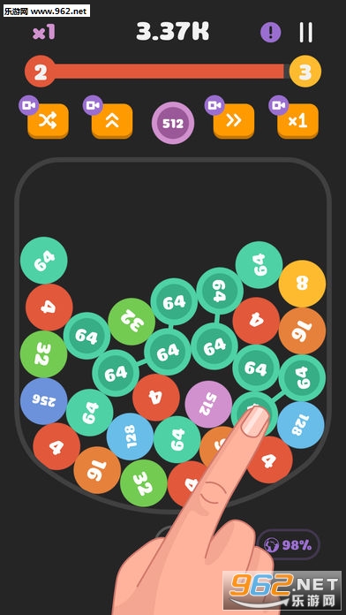 手指移到气泡上并连接它们,使它们合并为更高的数字