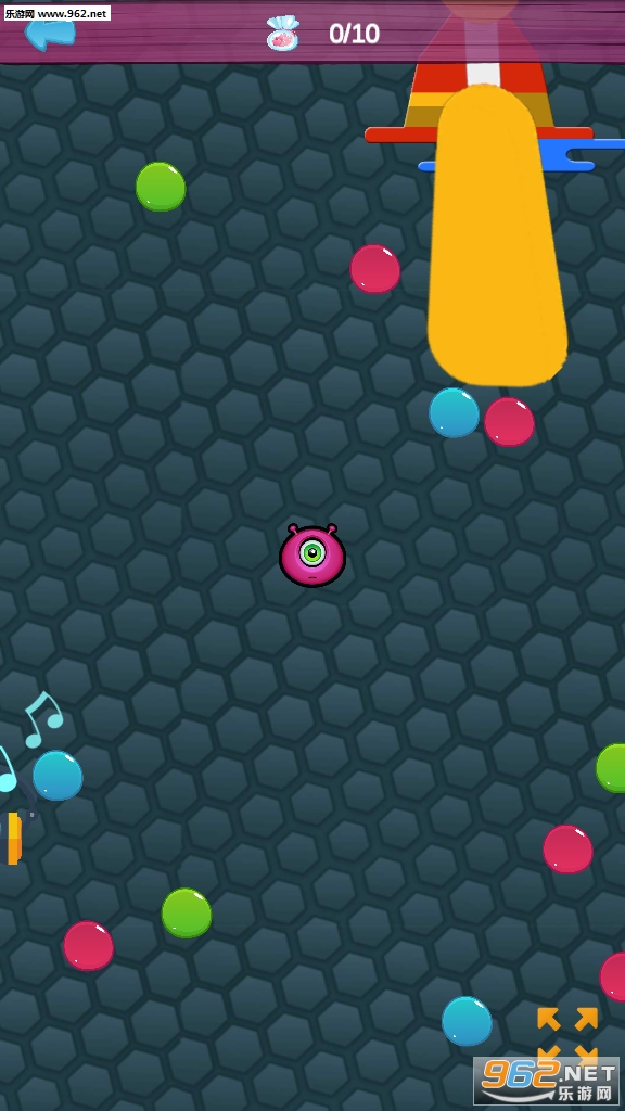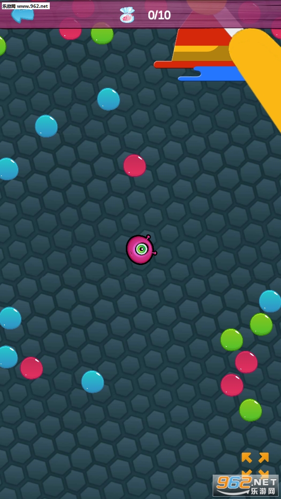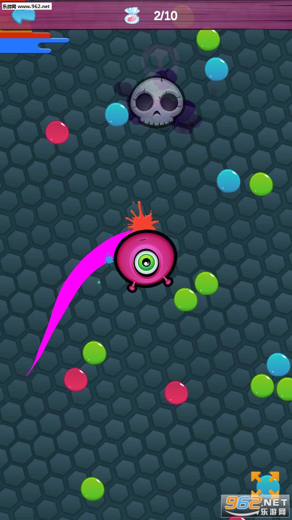 这是一款操作非常简单的游戏,通过操作独眼小怪兽不断的吞噬跟自己颜色相同的史莱姆,小心地图上的障碍和毒气,欢迎下载体验!