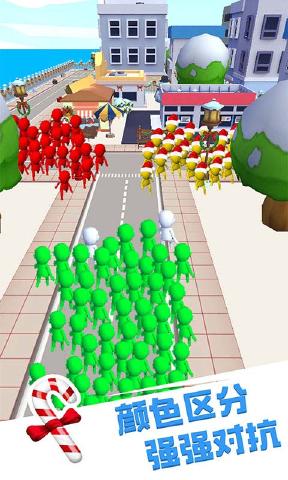 在游戏中,玩家可以在这个大型3D模拟城市中四处移动游走圈粉,粉丝越多则越能将其他团体同化吞并,与其他团体操控者实时对战,淘汰其他的团体,积累自己的人气,组成百人大军!简约精致的画风,灵活可爱的人物模型,大型真实且乐趣十足的完美城市将给玩家带来酣畅淋漓的百人大乱斗体验。只要遇到比你的军团人数少的队伍,你就可以将对手的人群吞噬,你的人群会变得更大,背后人群数量最大的领导即可获得胜利,收集他们的力量来守护城市吧。