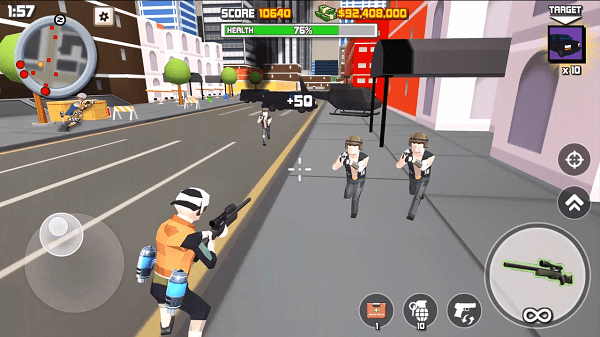 皇家枪战像素fps游戏是一款像素射击类的自由冒险游戏,玩家们在城市中疯狂的射击吧,加入到混战中,为你准备了很多的武器,还有飞机大炮,在这个广阔的城市中去击败敌人,还有很多的任务可以使用,一起来这里玩耍吧!