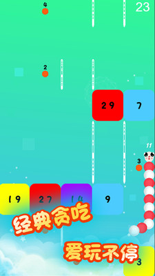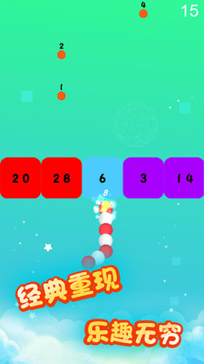 《球球与白块大战官方版》是一款十分新颖独特的休闲娱乐物理闯关类游戏。游戏结合了贪吃蛇与打砖块两种玩法,玩家在游戏中需要控制一条贪吃蛇不断的吞吃平安果来使自己变长,你可以撞击那些比你身体数字小的那些方块来摧毁它们。感兴趣的小伙伴儿赶快来下载试试吧!