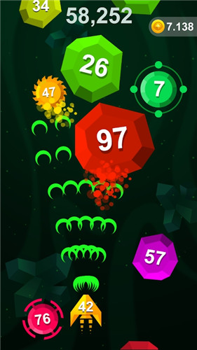 《陨石射手安卓版》是一款超劲爆的街机飞行射击类的游戏,融合了经典的打砖块的玩法,操作你的战机进行射击,将前方各种大小的方块打碎,要注意打碎之后的碎片,一边躲避一边射击,指尖操作的感觉还是很爽快的,感兴趣的亲赶紧下载吧。