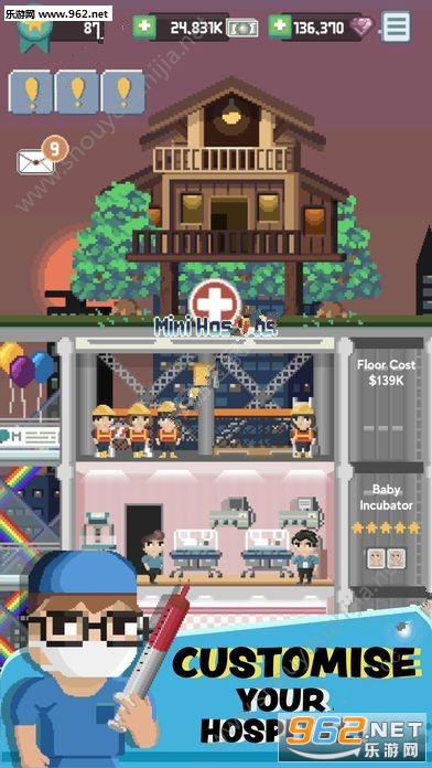 《mini hospital安卓版》是一款非常好玩的模拟经营题材手机游戏,在这款游戏中玩家将体验不一样的游戏玩法和乐趣,你需要不断让自己的医院规模越来越大,像素风格的游戏画风增加了游戏的可玩性和难玩程度,感兴趣的小伙伴欢迎下载体验试玩!