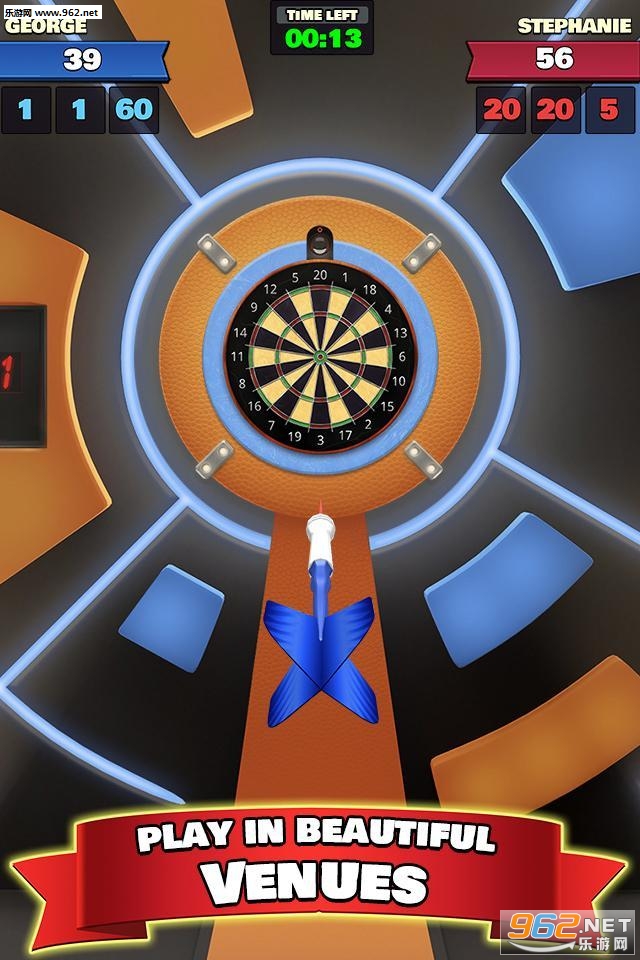 游戏的比赛场景非常多,可升级的飞镖也琳琅满目,还能和全世界的玩家联网实时对战,游戏比较考验玩家的反应能力哦~喜欢的快来下载吧!