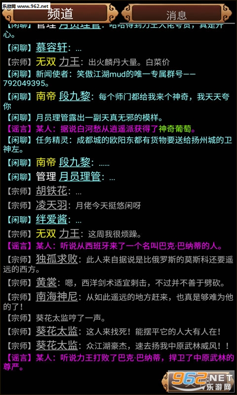 笑傲江湖是一款经典的文字类武侠游戏,在这里,以武为尊,游戏中有众多门派可以选择,玩家根据文字提醒选择加入的门派,努力修炼成为一代宗师,这款游戏集中在一个大地图上,各种剧情通过文字表达,仿佛自己在亲身扮演一个话剧角色,而主角就是你,玩家在这里不仅可以看到身边的人在做什么,还能一起和好友接接任务刷刷副本,闯荡江湖。
