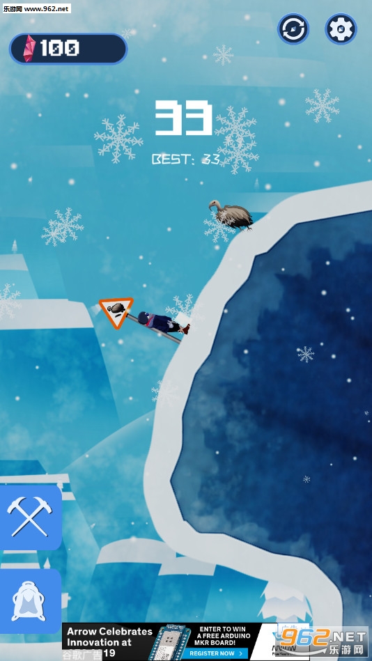 《克服爬山冒险安卓版》(Get Over Climb Adventurea)是一款画面简约的类似掘地求升的攀登冒险手游,游戏中玩家将控制一个人在雪上上攀爬,可以使用一个伸缩的锤子一点一点的越过各种危险,需要注意的是如果碰到雪崩塌或者落在了冰锥等上面,游戏就结束了。