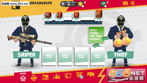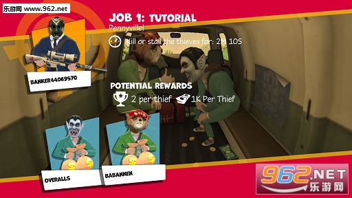 劫匪和狙击手都会戴上有趣的头套,同时也可以买更搞怪的头套!小偷可以购买更高级的背包和技能,狙击手也可以购买伤害更高的武器,是一款简单有趣的非对称竞技手游!