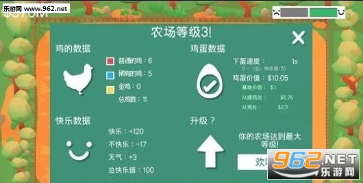 这是一玩法简单有趣的经营游戏,玩家通过养鸡来获得收入,赚越多的钱你就能够获得更多稀有的鸡品种,打造村里最大的养鸡大亨,成为一名鸡国王,欢迎下载!