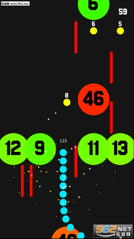 这种贪吃蛇类型的游戏真的太能够打发时间了,不知不觉就玩了好久,收集更多的小圆点让自己长大,选择数字更小的障碍通过,操作的一定要准确一点哦!