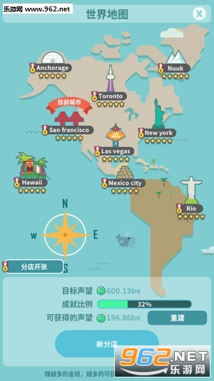 到21座美丽的城市旅行并开启您新的分支以及收集好的名声。拥有更好的名声,您就能赚更多的钱!