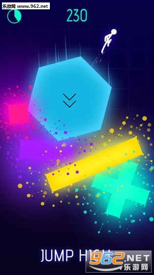 2.从一个霓虹灯形状跳跃,翻转和滑动,使它们发光,在你玩的时候收集星星以提高你的分数;