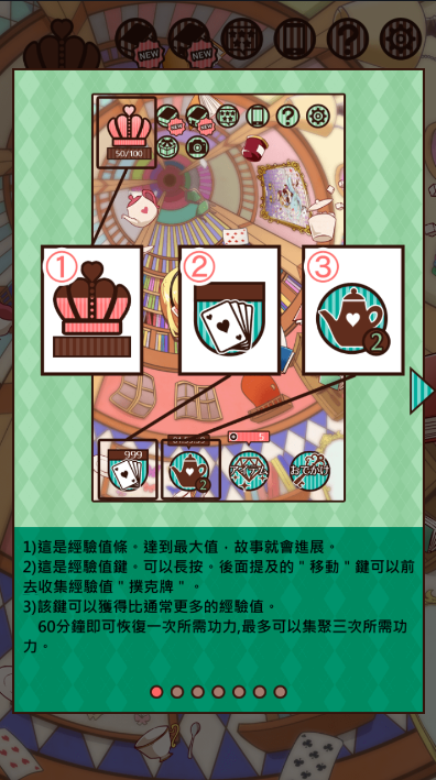游戏画面精美,玩法简单,剧情内容精彩,在延续了童话基础的剧情时,增加了很多有趣的玩法,比如收集,放置,养成等等,玩家在游戏中需要根据剧情的提示不断地帮助我们的爱丽丝收集道具,强化自己!