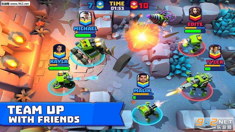 2、3V3的对战故事上演华丽的瞬间,真实的竞技任务我们为了地盘而战,拥有更多的资源获得最终的成就;百玩不厌的竞技场,也是坦克英雄的超神之路!