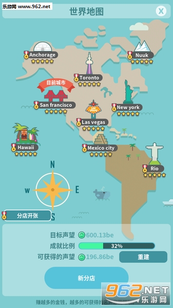 到21座美丽的城市旅行并开启您新的分支以及收集好的名声。拥有更好的名声,您就能赚更多的钱