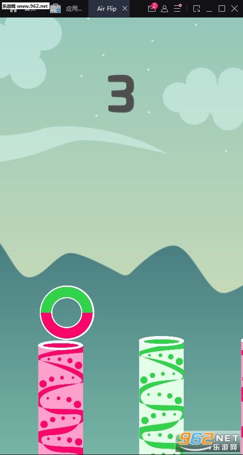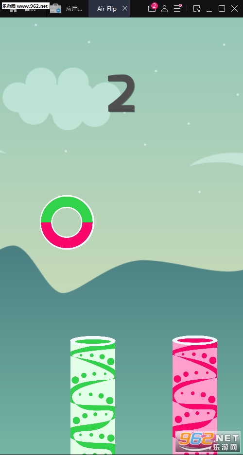 《air flip空中翻转安卓版》是一款2D卡通风格以球跳跃为题材的休闲益智类游戏。在游戏中,玩家需要控制一个一半是绿一半是红色的球跳跃前进,而落地的柱子有红有绿,你需要翻转对应的颜色降落在柱子上。