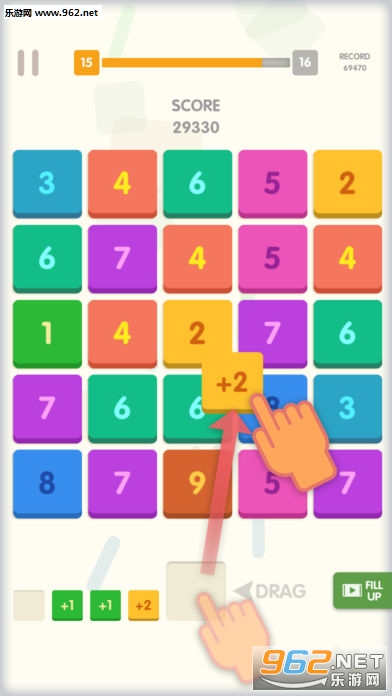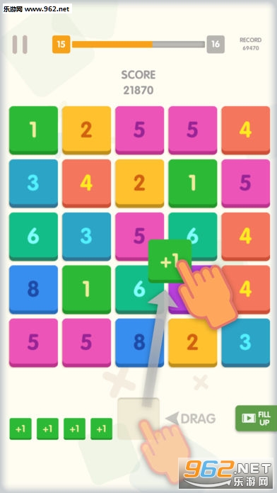 每局游戏开始你有五张手牌,将手牌拖放到棋盘的任意数字上,会获得数字和手牌的和。