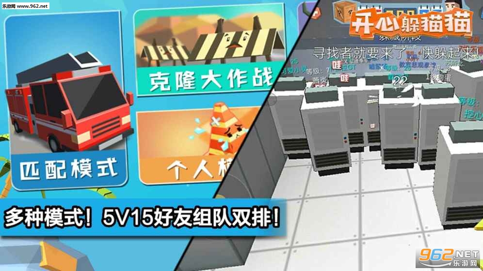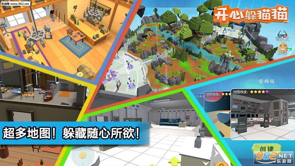 《开心躲猫猫》是一款休闲竞技3D捉迷藏游戏,其定位为io类型,即多人在线即时娱乐,游戏简单而有趣,百玩而不腻。玩家在游戏中随机分配为两个阵营:寻找队和躲藏队,躲藏队可以伪装成场景里的任何物品,唯一的目的就不要让寻找队找到你,只要你能生存200秒你就能赢得胜利,还等什么,快来体验最简单的快乐吧!