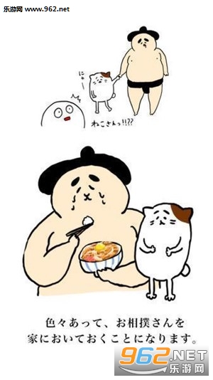 没想到的是,自家的小猫突然就把那位相扑选手带回了家,并且特地做了美味的饭给他吃