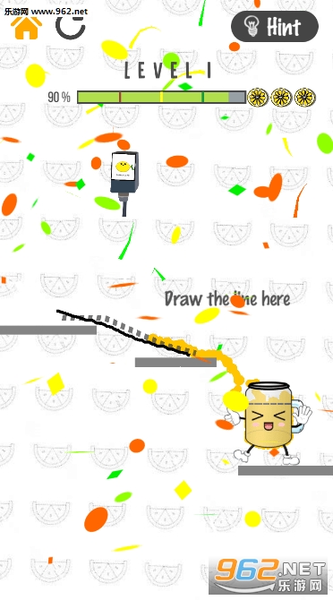 这是一款小清新风格的休闲闯关游戏,玩法有点类似于开心玻璃杯,玩家需要划线,让柠檬水进入玻璃杯中,当水量到达80%之后就能通关,碳酸柠檬水游戏后面难度会逐渐增加!