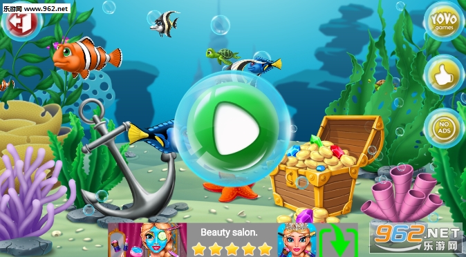 游戏融入了换装的元素,你可以为可爱的美人鱼选择时尚的发型和服饰,还可以到深海探险,寻找宝藏,玩法非常丰富哦~