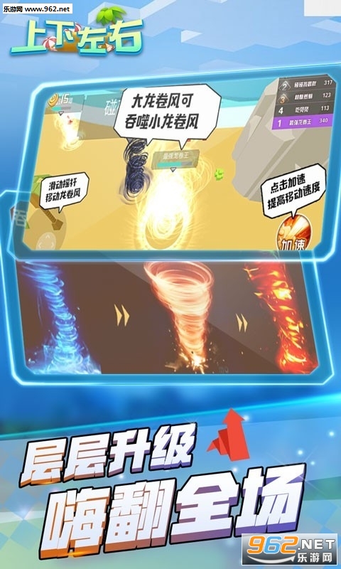 但是在一局游戏中会有龙卷风对手加入,假如你的对手吞噬的障碍物比你更多,威力比你更强大,那么他就能轻松将你撕裂。
