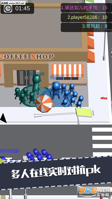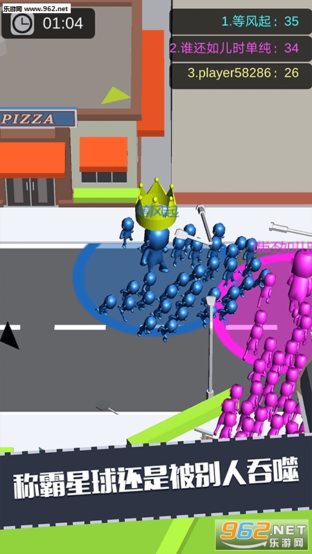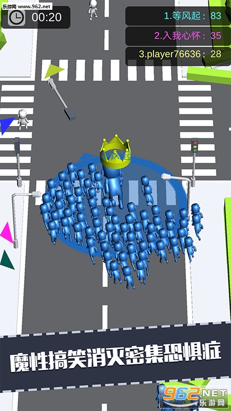趣味魔性的休闲益智竞技手游。在城市中游荡奔跑,吸引人群加入你的奔跑大军中。遇到比你人数少的队伍,就可以将对手的人群吞噬。在时间结束前,最大人群的玩家即可获得胜利!