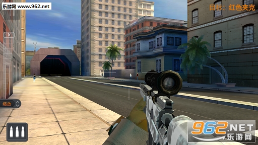 游戏是以狙击任务而展开内容的,玩家受到狙击任务后瞄准敌人进行枪杀,有趣的是,每次开枪后,视角将由狙击镜转移到子弹,慢动作一直到敌人身上,感觉特别刺激!