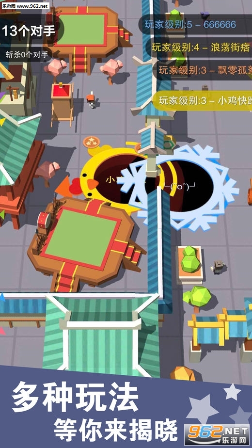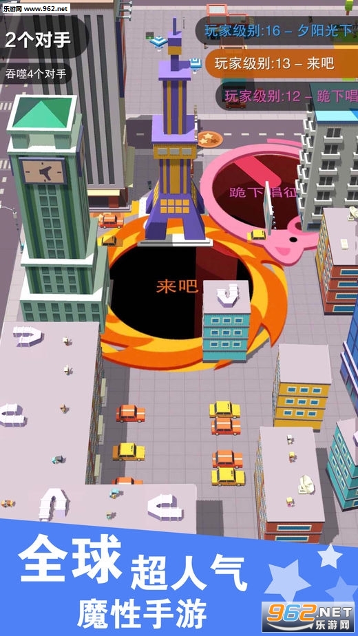 《欢乐黑洞大作战安卓版》是一款十分好玩上瘾的休闲娱乐多人竞技吞噬类io游戏。游戏的玩法非常的简单,在游戏中玩家需要控制一个黑洞不断的城市中游走来吞噬各种物体,你吞噬的物体越多你的体积就越大,你还可以吞噬那些体积比你小的玩家。喜欢这款游戏的小伙伴儿赶快来下载试试吧!