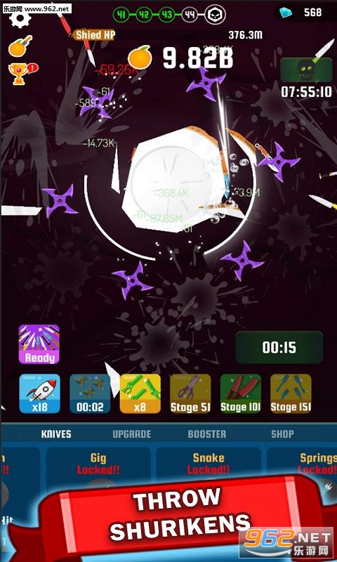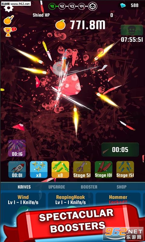您可以升级为自动射击刀,或点击投掷或使用助推器来完成游戏。